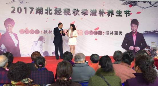 侯医生和主持人卫华在舞台上互动讨论养生知识